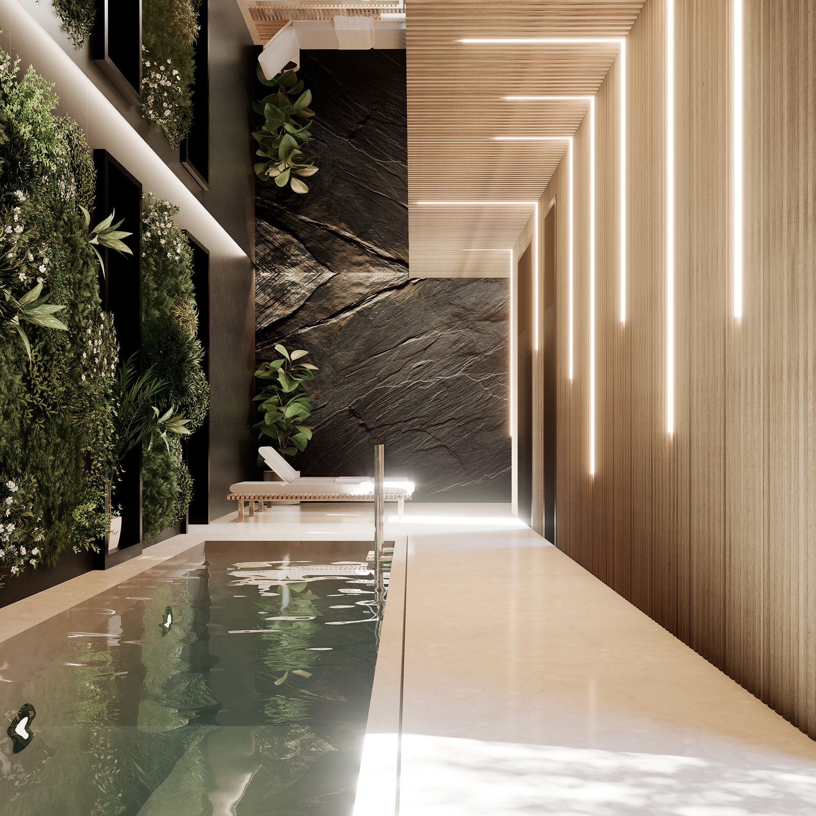 La singularidad de nuestras viviendas en GP20 encuentra su equivalente en la exclusividad de las zonas comunes del edificio. Los amenities han sido cuidadosamente diseñados para ofrecer un pequeño oasis de desconexión y relajación en pleno centro de Madrid. Esto eleva la experiencia de vida, destacando entre otros el canal de nado, la sauna exclusiva, gimnasio de alta gama o la ducha de cromoterapia.