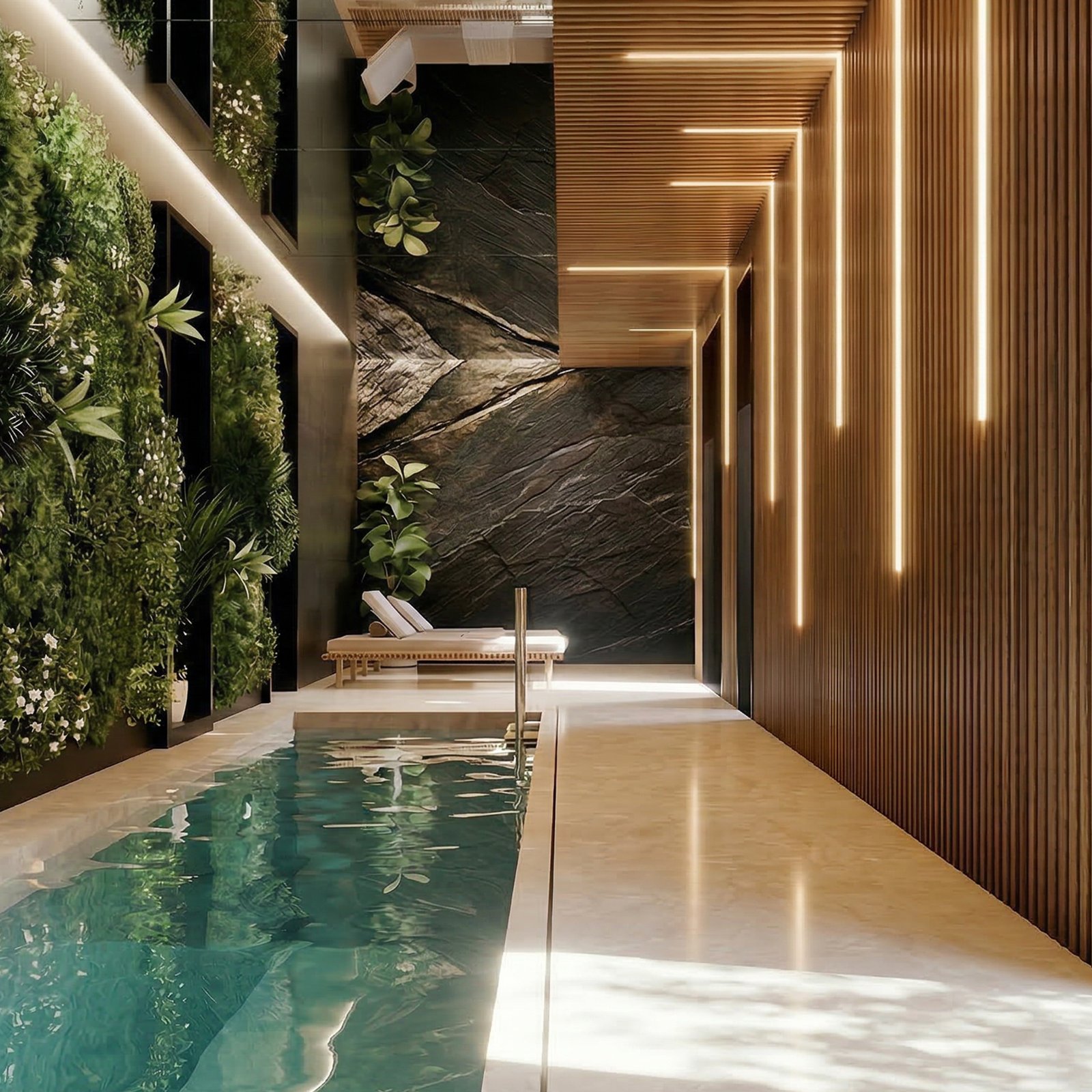 La singularidad de nuestras viviendas en GP20 encuentra su equivalente en la exclusividad de las zonas comunes del edificio. Los amenities han sido cuidadosamente diseñados para ofrecer un pequeño oasis de desconexión y relajación en pleno centro de Madrid. Esto eleva la experiencia de vida, destacando entre otros el canal de nado, la sauna exclusiva, gimnasio de alta gama o la ducha de cromoterapia.